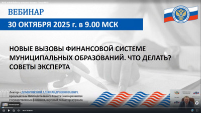 Контрольно-счетная палата Павлово-Посадского городского округа Московской области 30 октября 2025 года в качестве слушателя приняла участие в вебинаре проводимом Союзом муниципальных контрольно-счетных органов в рамках обучающих мероприятий на тему: «Новые вызовы финансовой системе муниципальных образований. Что делать? Советы эксперта». Лектором выступил – Домбровский Александр Николаевич, председатель наблюдательного Совета Союза развития государственных финансов, председатель научный редактор журнала «Бюджет». При проведении вебинара были рассмотрены актуальные вопросы и варианты решения по предмету вебинара. |