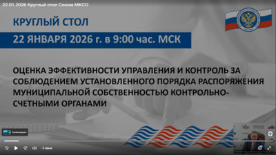 Контрольно-счетная палата Павлово-Посадского городского округа Московской области 22 января 2026 года в качестве слушателя приняла участие в вебинаре проводимом Союзом муниципальных контрольно-счетных органов в рамках обучающих мероприятий на тему: «Оценка эффективности управления и контроль за соблюдением установленного порядка распоряжения муниципальной собственностью контрольно-счетными органами». Со своими практиками в ходе проведения мероприятия участников ознакомили: Алдашова С.Г. - председатель Контрольно-счетной палаты города Красноярска с докладом на тему: «Практика контроля Контрольно-счетной палаты города Красноярска за формированием и распоряжением муниципальной собственностью», Ульянова М. А. - председатель Контрольно-счетной палаты муниципального образования «Город Саратов» с докладом на тему: «Об опыте проведения контрольного мероприятия по вопросам управления и распоряжения земельными участками», Шевцова Т.Н. - заместитель председателя Контрольно-счетной палаты муниципального образования город Краснодар с докладом на тему: «Практика проверки качества учета муниципального жилищного фонда», Батуева М.Ф. - председатель Контрольно-счетной палаты города Перми с докладом на тему: «Роль Контрольно-счетной палаты города Перми в повышении доходного потенциала бюджета по результатам контроля за распоряжением муниципальным имуществом и земельными ресурсами».